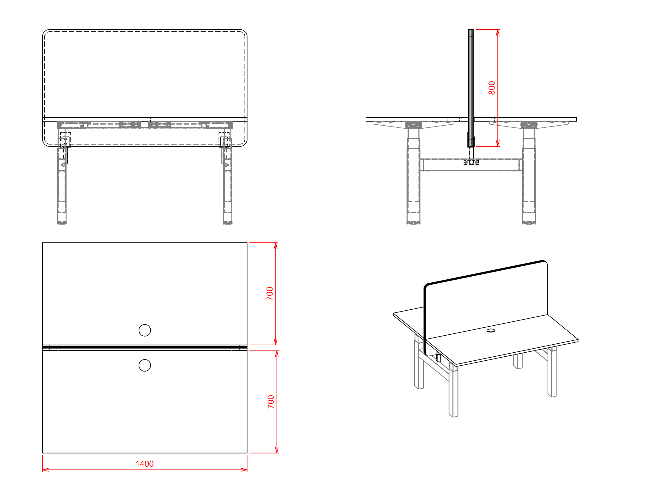 Nowy bench z elektryczną regulacją wysokości – 140 × 140 cm + tapicerowana przegroda