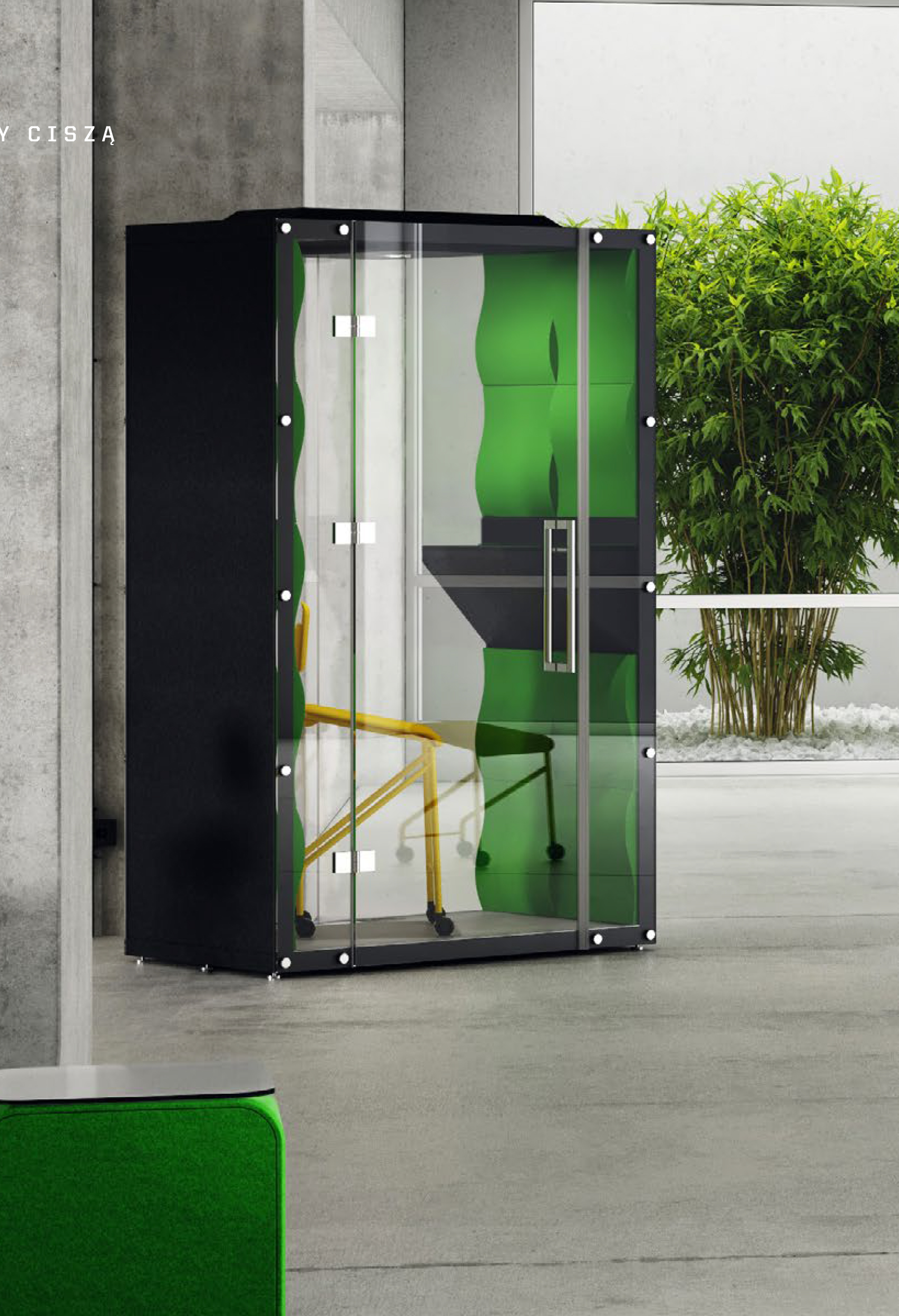 | Vank Box 6-osobowyBudka Vank Box – dzięki specjalnej konstrukcji i zastosowaniu materiałów dźwiękochłonnych – skutecznie izolują od hałasu. Ich rola może być wieloraka: począwszy od budki telefonicznej lub miejsca na chwilowe wyciszenie i zebranie myśli, poprzez pomieszczenie na briefing w małym zespole, na wideokonferencji skończywszy. Budka Vank Box dostępna jest bowiem w wersjach 1-, 2/3-, 4- i 6-osobowych. |  |