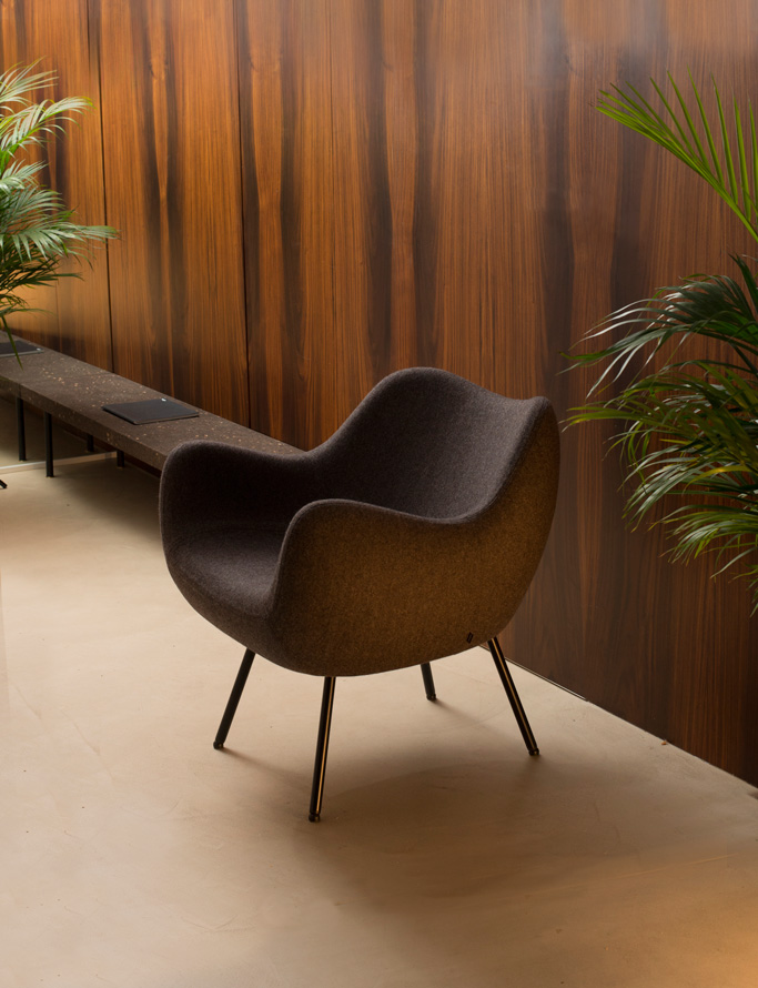 Fotel RM58 to nowoczesna wersja wyjątkowego fotela zaprojektowanego przez Romana Modzelewskiego w 1958 roku. W tamtych czasach, wykonany ręcznie, był jednym z pierwszych polskich przykładów mebli z laminatu poliestrowo-szklanego, a jego innowacyjność polegała nie tylko na zastosowanych materiałach. W pełni zamknięta organiczna forma siedziska nie miała w swoim czasie odpowiednika, zarówno w Polsce, jak i poza nią. Jednym z najstarszych zachowanych prototypów (białego koloru) został zakupiony do stałej kolekcji projektowej w Victoria and Albert Museum w Londynie.