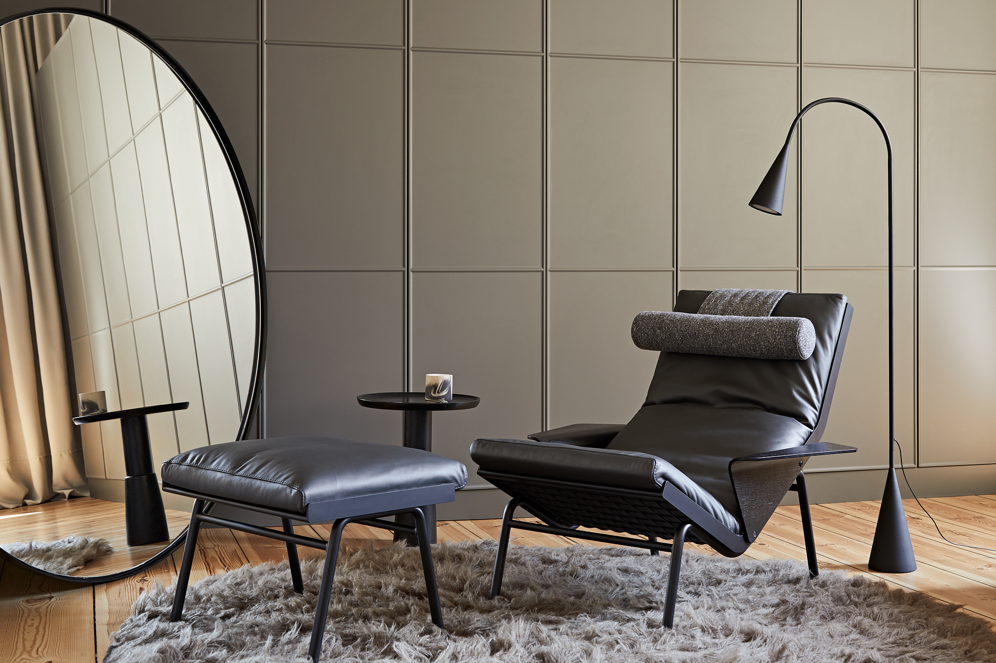 | Cechy Podstawa –Nogi z rury stalowej, malowane proszkowo Siedzisko –Elementy stalowe malowane proszkowo; materac z filcu i pianki poliuretanowej z dodatkowym wypełnieniem silikonowym, z domieszką ciętej pianki poliuretanowej Konstrukcja – Elementy metalowe Podłokietniki – Sklejka gięta bukowa, obustronnie okleinowana okleiną naturalną dębową Zagłówek – Wypełnienie silikonowe wzmocnione ciętą pianką poliuretanową; stalowy obciążnik zagłówka malowany proszkowo Wykończenie – Tkanina, skóra |