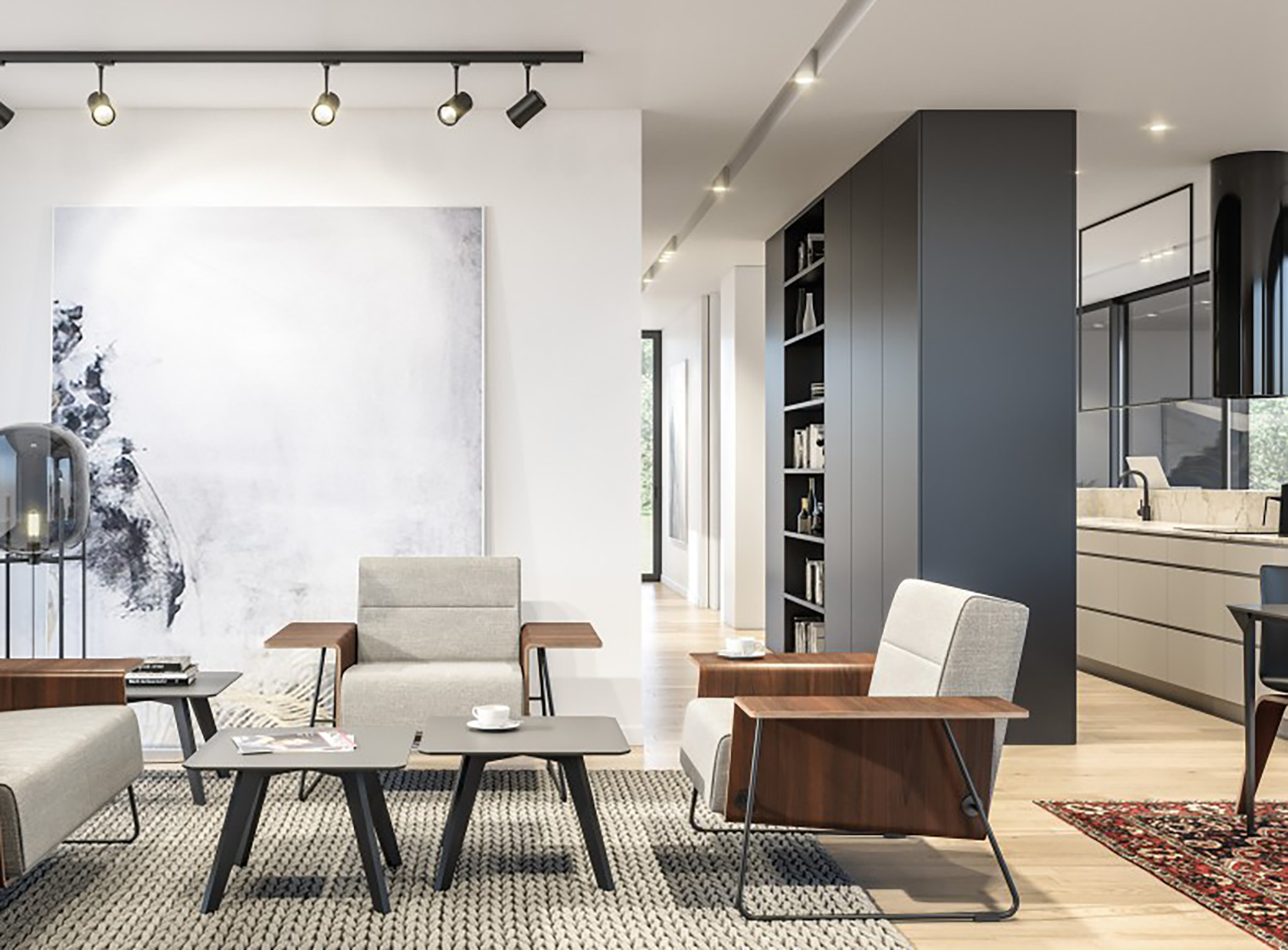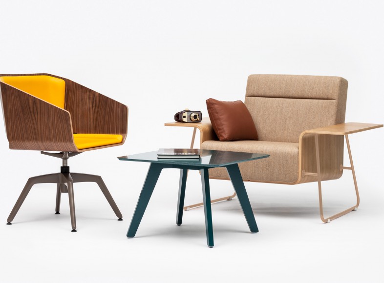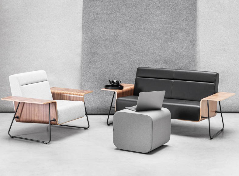| VANK DRONN VANK DRONN fotel z podłokietnikami z profilowanej sklejki bukowej w okleinie naturalnej standardowo dąb, w opcji: orzech, klon, z blatem przeznaczonym np. na laptopa. W pełni tapicerowane siedzisko i oparcie. Podstawa to stelaż stalowy malowany proszkowo lub chromowany, zakończony ślizgami do wykładzin dywanowych, w opcji do podłóg twardych. VANK DRONN to rodzina produktów składająca się z foteli, sof z podłokietnikami i stolików. |  |