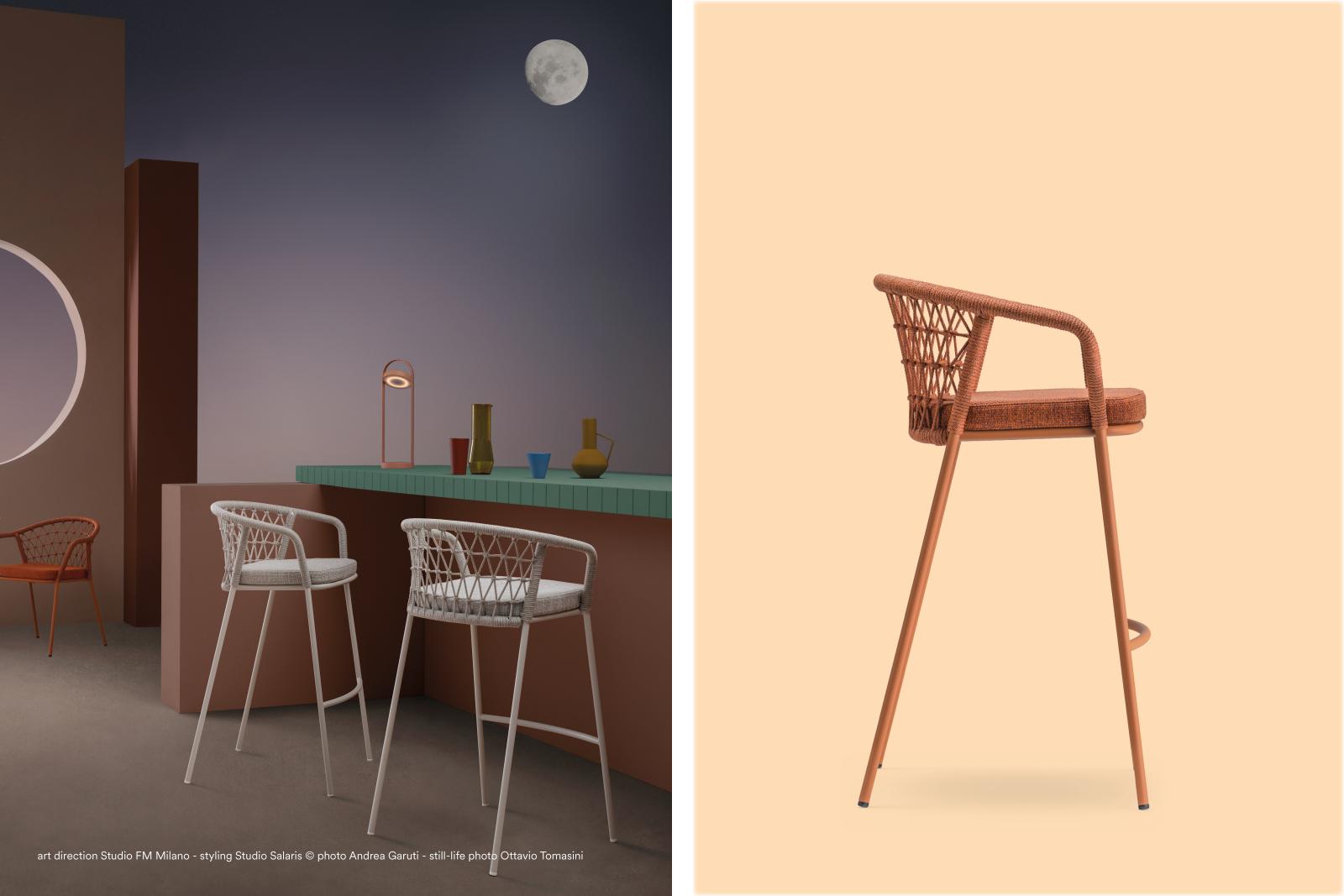 | Pedrali Panarea 3678 Panarea 3678 to designerski hoker. Wykonany z rurki metalowej o średnicy 20 mm, ocynkowany i wykończony farbą proszkową. Charakterystycznym elementem jest pleciona ręcznie we Włoszech lina polipropylenowa, która owija się wokół ramy. Siedzisko wyposażone jest w poduszkę z pianki poliuretanowej o właściwościach odprowadzających wilgoć, pokrytą tkaniną. Dodatkowo wyposażony w podnóżek. To elegancki i funkcjonalny wybór dla każdego wnętrza lub przestrzeni zewnętrznej. |  |