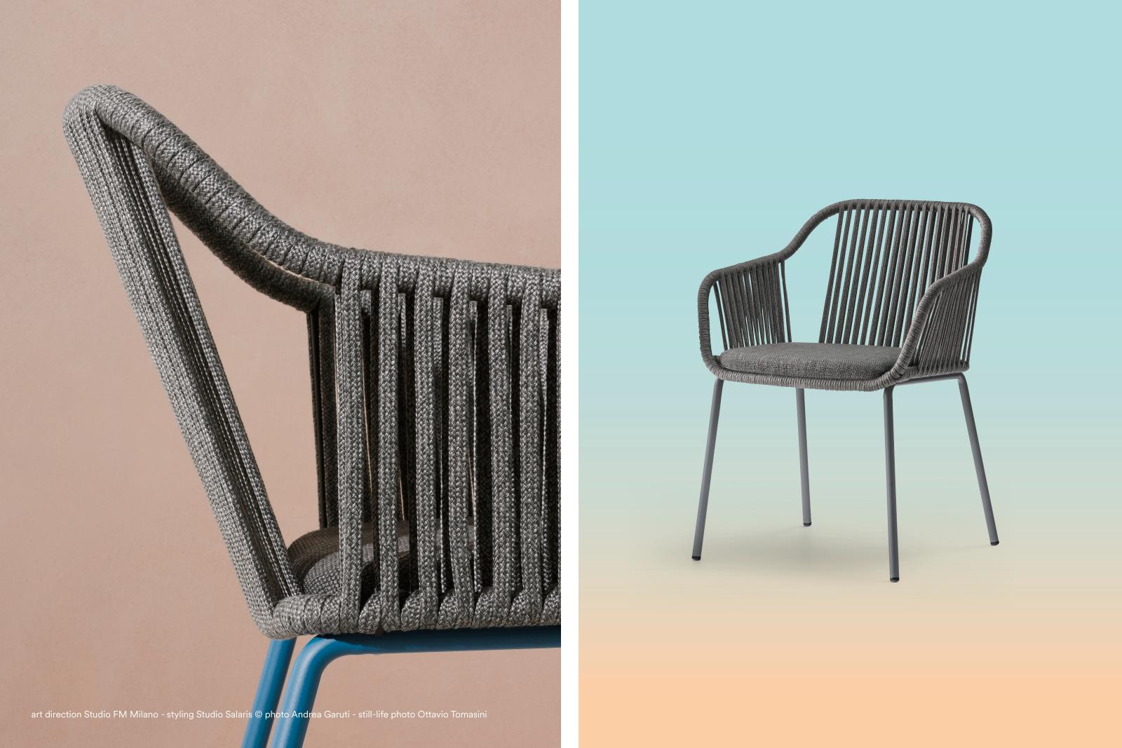 Pedrali Babila Twist 2795 Babila Twist 2795 to krzesło wykonane z rur stalowych. Siedzisko zostało wyplecione z płaskiej liny z polipropylenu. Charakterystyczną cechą jest połączenie wyplatanego siedziska z ramą stalową z listwami do siedzenia. Poducha z pianki poliuretanowej pokryta jest tkaniną nadającą się do użytku na zewnątrz. |