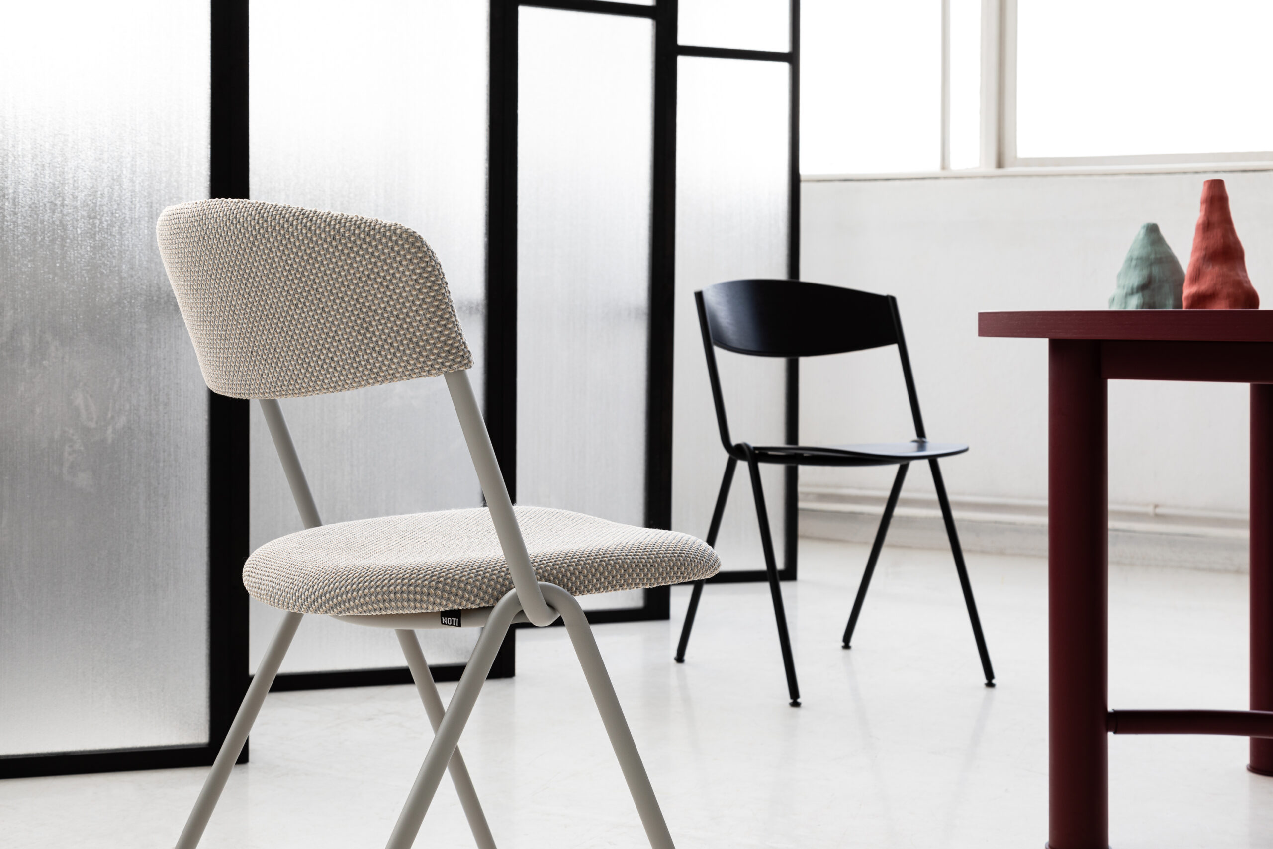 | Noti Eke Eke to niewielkie krzesło, które wyróżnia się wyrafinowaną i minimalistyczną konstrukcją. Jego prosta sylwetka z subtelnie profilowanymi sklejkami z dębowym fornirem oraz przemyślanym tapicerowaniem przyciąga uwagę. Charakterystyczny element konstrukcyjny w postaci węzła z giętych rurek nadaje projektowi niepowtarzalność. Wyraźne kąty nachylenia nóg i oparcia inspirowały nazwę rodziny Eke. Pomimo prostoty, krzesła te zachowują swój indywidualny charakter i doskonale wpasowują się w różnorodne przestrzenie. Dostępność różnych rodzajów wykończenia pozwala na łatwe dopasowanie ich do projektowanych wnętrz. Wersja podstawowa eksponuje naturalny fornir na oparciu i siedzisku. Krzesła tapicerowane zapewniają wyjątkowy komfort, idealny do codziennego użytku w domu lub w restauracjach. Wersja z pełnym tapicerowaniem pleców wyróżnia się unikalnym charakterem dzięki różnorodnym wzornikom tkanin Noti. Nietapicerowane krzesła pozwalają na sztaplowanie, co sprawia, że są funkcjonalnym rozwiązaniem w miejscach, gdzie każdy dodatkowy metr przestrzeni ma znaczenie. |  |