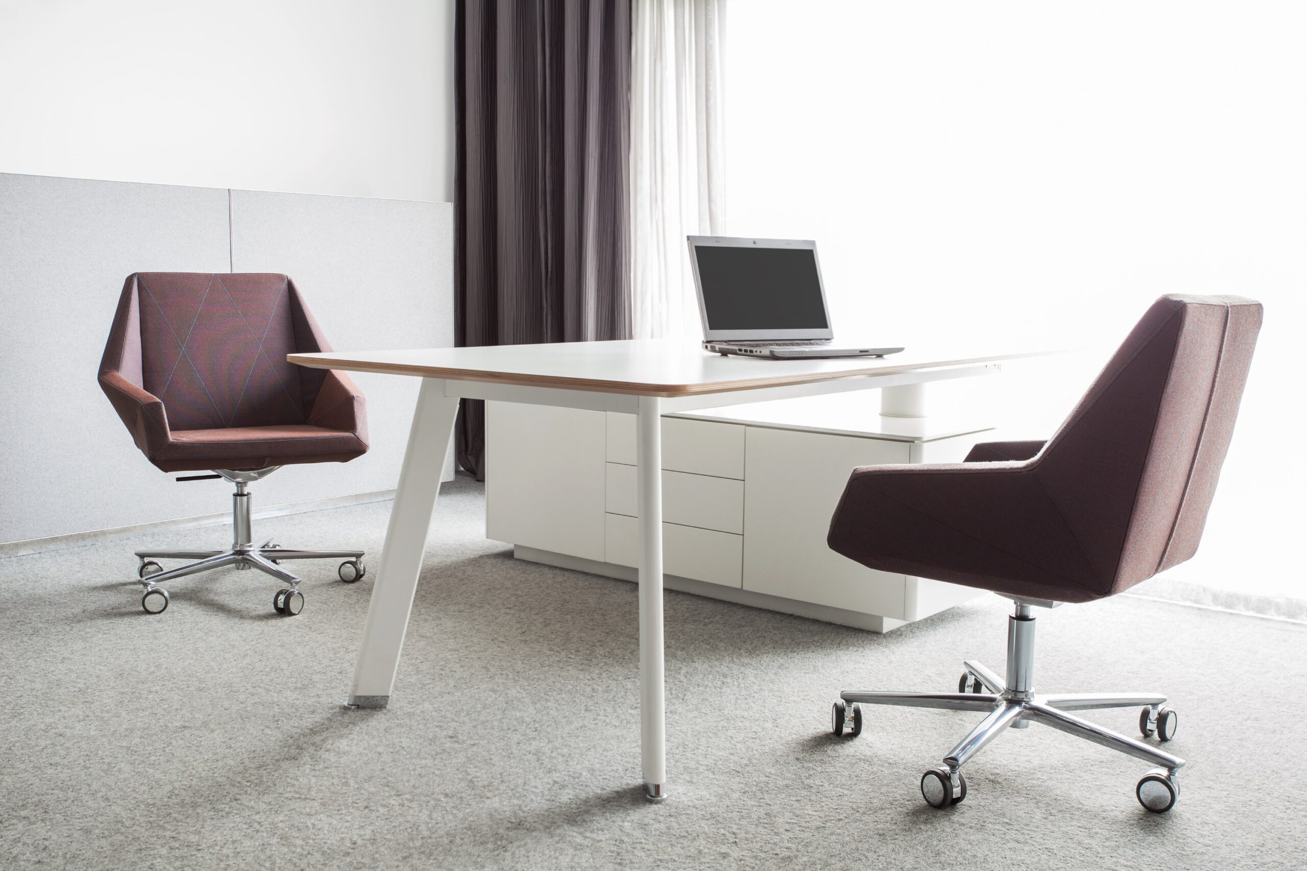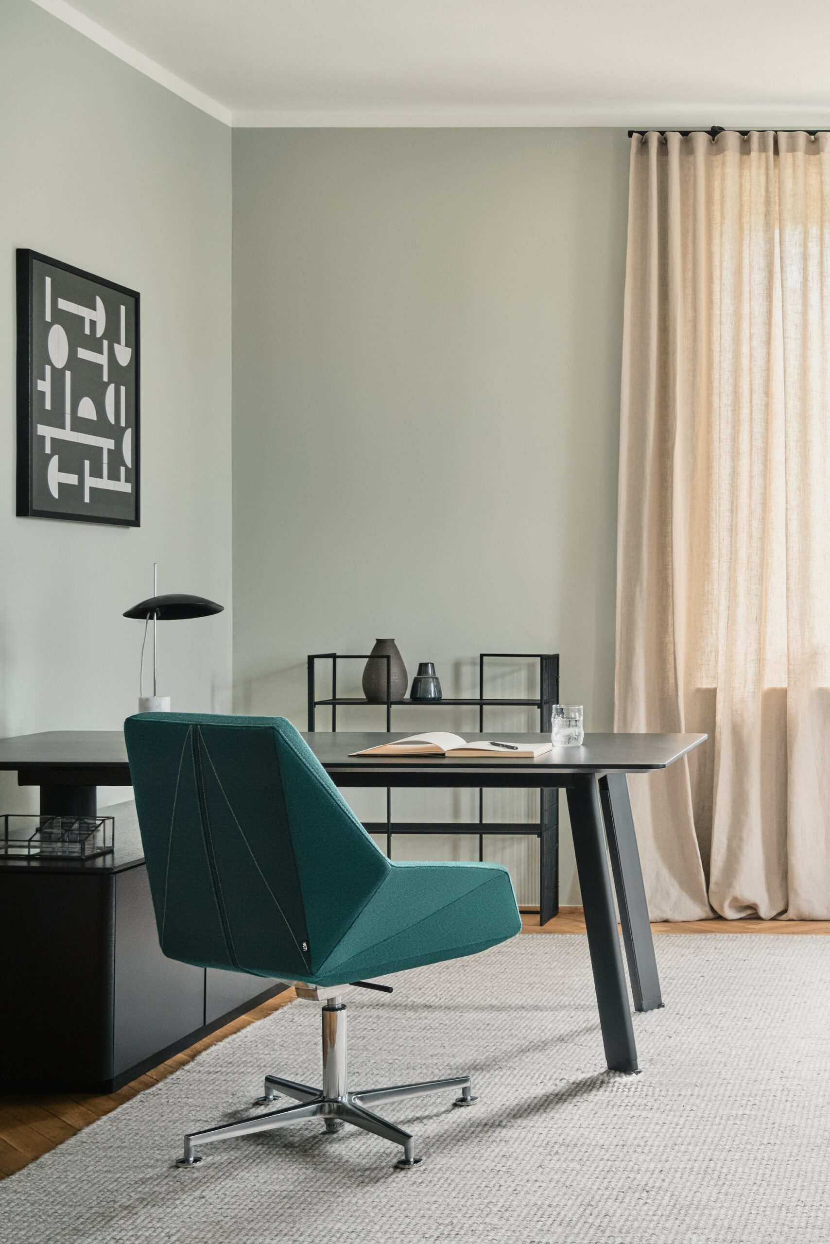 | Noti Prism Krzesło Prism wyróżnia się niezwykle charakterystyczną geometrią, gdzie wszystkie krawędzie są proste i tworzą wielokątne płaszczyzny siedziska, przypominając szlify szlachetnych kamieni. Elegancję podkreślają krzyżujące się linie przeszyć. Prism produkowany jest z użyciem zaawansowanej technologii pianki wtryskiwanej, co gwarantuje zarówno jego trwałość, jak i najwyższą jakość wykonania. Dostępne są dwie wersje podstawy – na kółkach i na stopkach. Krzesło Prism to doskonała propozycja przede wszystkim do użytku kontraktowego, gdzie znajduje zastosowanie jako krzesło biurowe, hotelowe lub restauracyjne. Wyróżnia je wyjątkowa forma oraz solidność wykonania. |  |