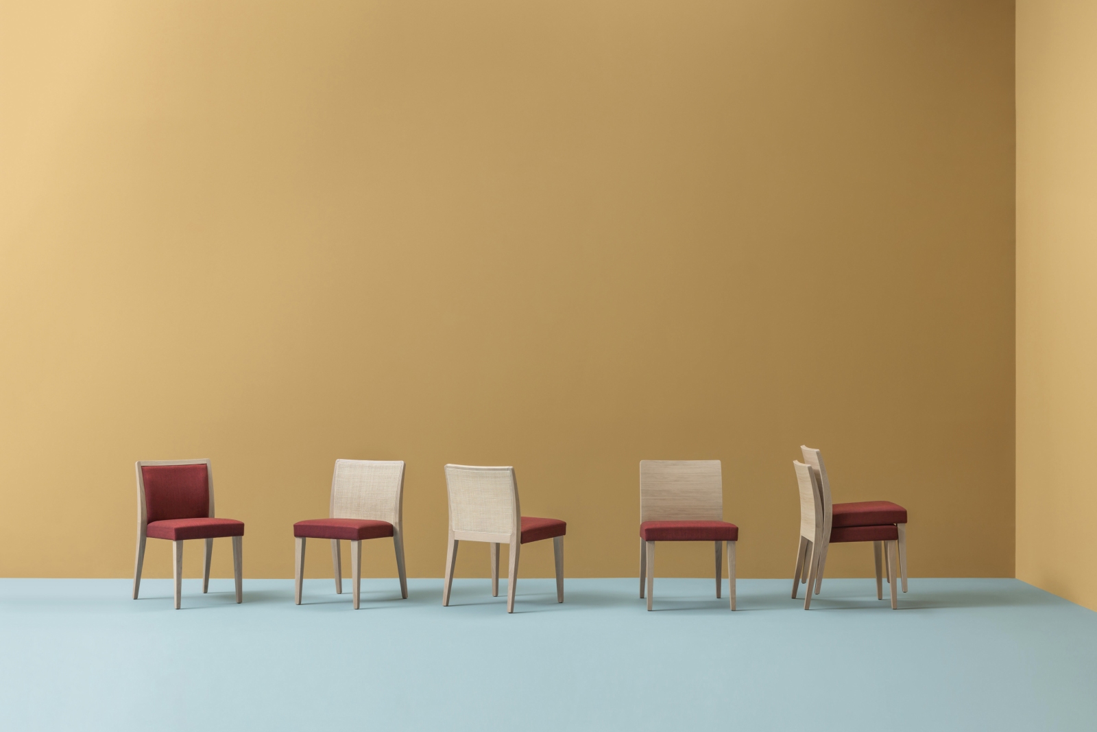 Pedrali Glam 433 Krzesło sztaplowane Glam ma solidną dębową konstrukcję i obszerną tapicerkę z elastycznymi paskami na siedzisku. Środkowa część oparcia wykonana jest z plecionej trzciny. |