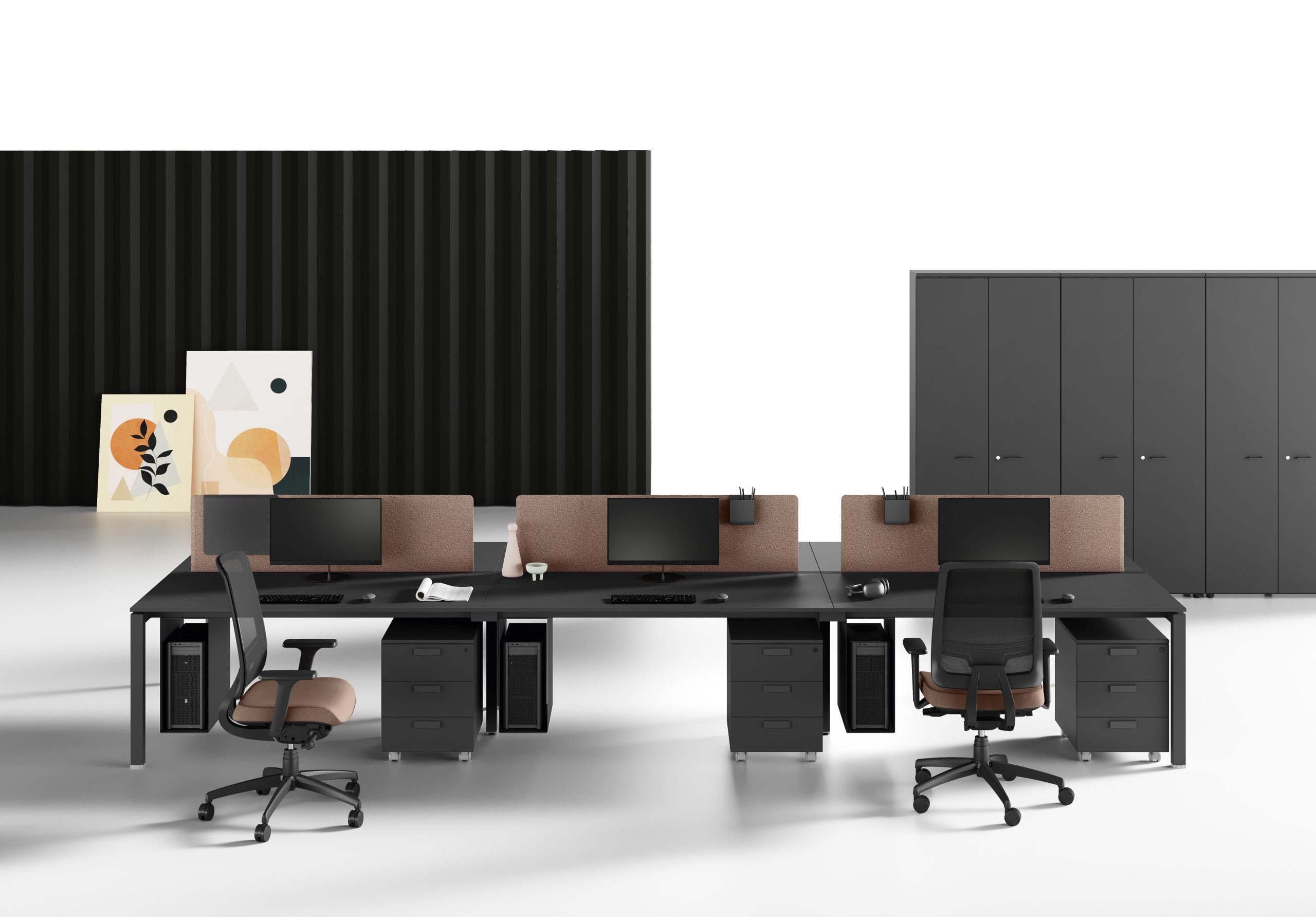 | Meble te charakteryzują się nowoczesnym designem, elastycznością i funkcjonalnością. Każdy element kolekcji został starannie zaprojektowany, aby dostarczyć elastyczne rozwiązania do organizacji przestrzeni biurowej, zachowując przy tym estetyczny wygląd. |