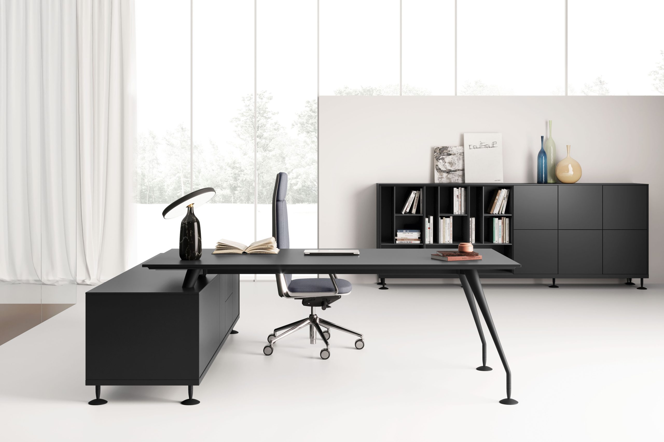 | LAS Enosi Kolekcja Enosi obejmuje biurka, stoły, komody oraz szafy, tworząc kompleksowe rozwiązania dla przestrzeni biurowych. Charakteryzują się one nie tylko wysoką jakością wykonania, ale także wzajemną komplementarnością, co umożliwia pełną i harmonijną aranżację gabinetu. Elegancka linia mebli gabinetowych Enosi prezentuje nowoczesne formy, doskonale dostosowując się do różnorodnych środowisk, zarówno klasycznych, jak i nowoczesnych. |  |