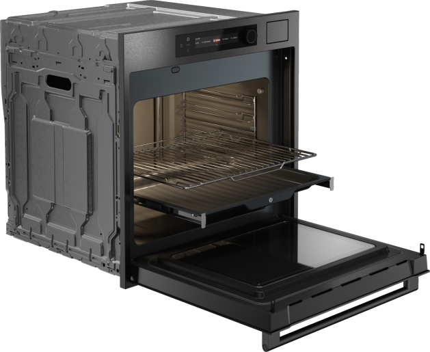Premium design i łatwe utrzymanie czystościPiekarnik posiada eleganckie, czarne szkło w nowoczesnym stylu, które idealnie wkomponuje się w zabudowę kuchenną. Drzwi z potrójnym szkłem i cichym domykiem zapewniają bezpieczeństwo oraz doskonałą izolację termiczną, a wnętrze ze stali nierdzewnej z powłoką Easy Clean ułatwia utrzymanie czystości. Gdy zabrudzenia są bardziej uporczywe, aktywuj program Pyrolytic Clean, który automatycznie spala pozostałości tłuszczu i osadów, pozostawiając wnętrze czystym bez potrzeby manualnego szorowania. |