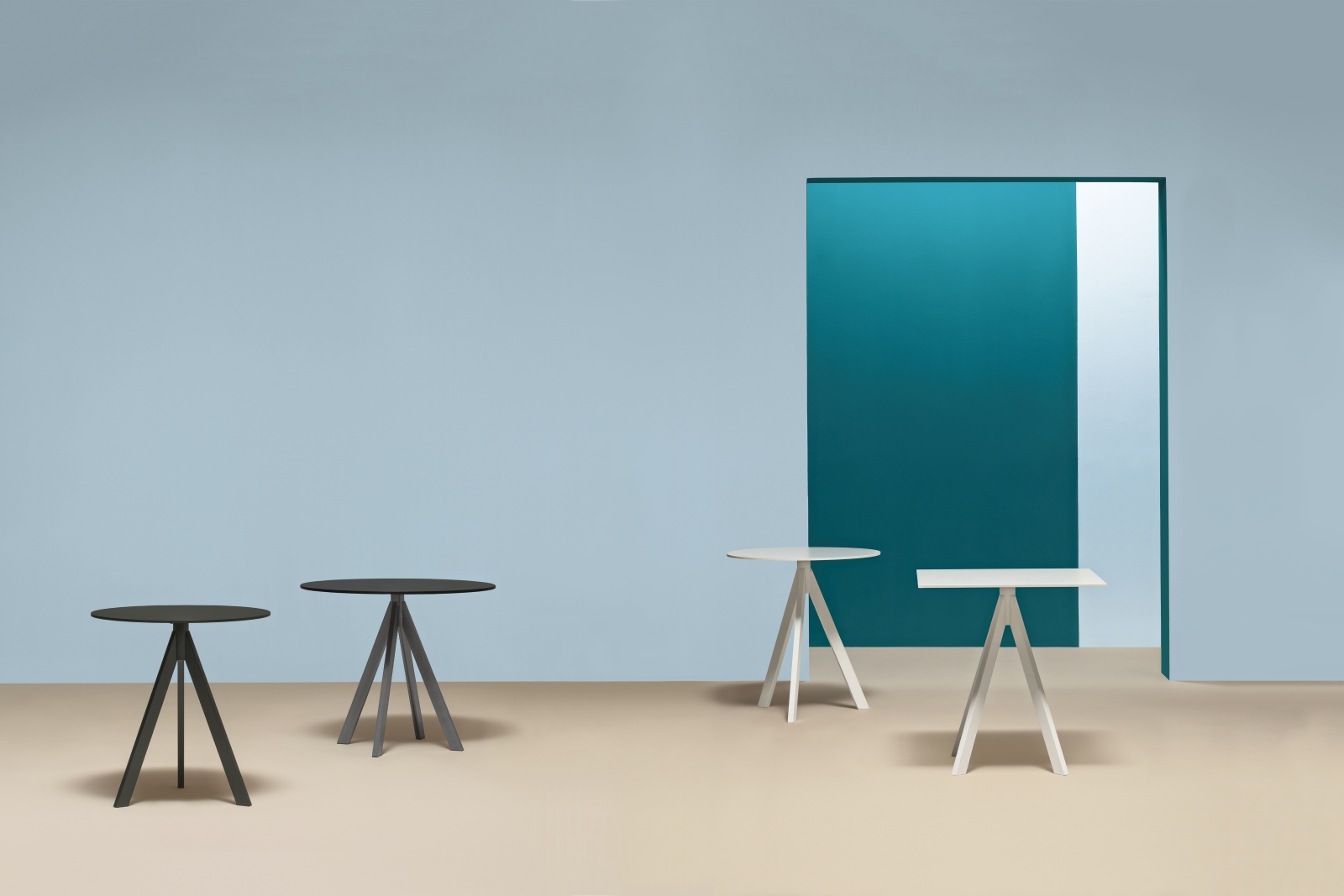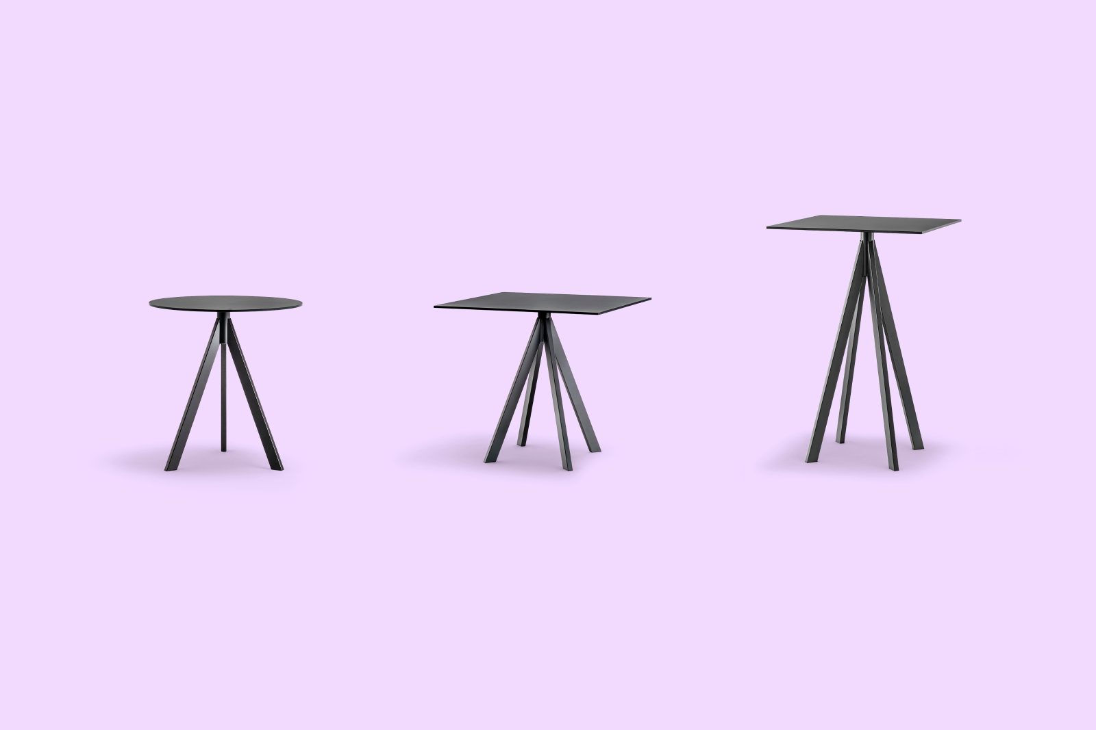 | Pedrali Arki Table ARK4 Arki Table to kolekcja stolików o industrialnym charakterze. Stół z czterema nogami z rur stalowych o przekroju prostokątnym, zbiegającymi się w środku blatu, przypominający kozły używane przez kowali. Dostępne z blatami o różnych rozmiarach i wykończeniach. |  |