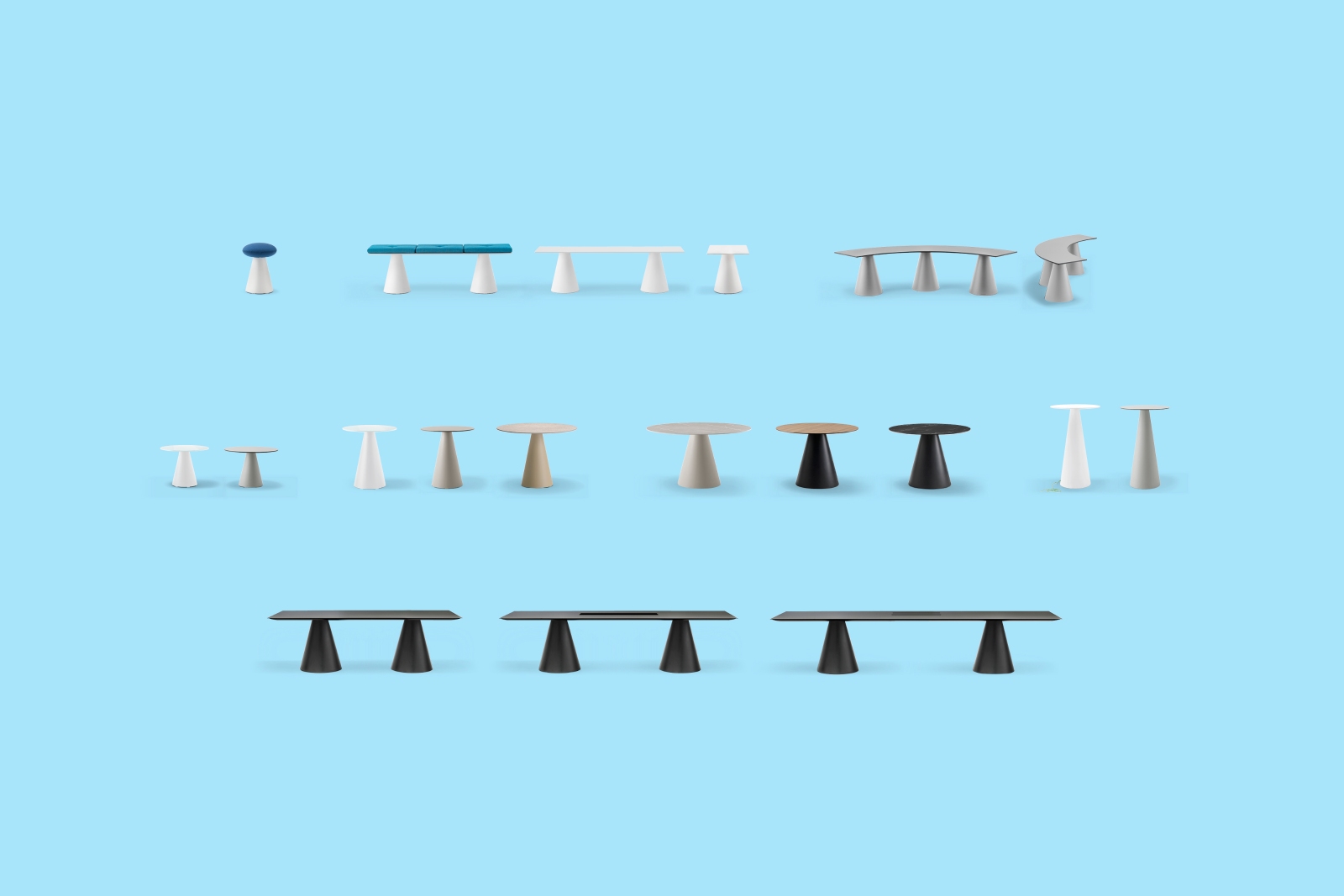 | Pedrali IKON TABLE IKTCC Ikon przemawia językiem architektury w najwyższym wyrazie prostoty i elegancji. Stół z dwiema stożkowymi podstawami wykonanymi z formowanego wtryskowo polietylenu i blatem z litego laminatu dostępny w różnych rozmiarach. |  |