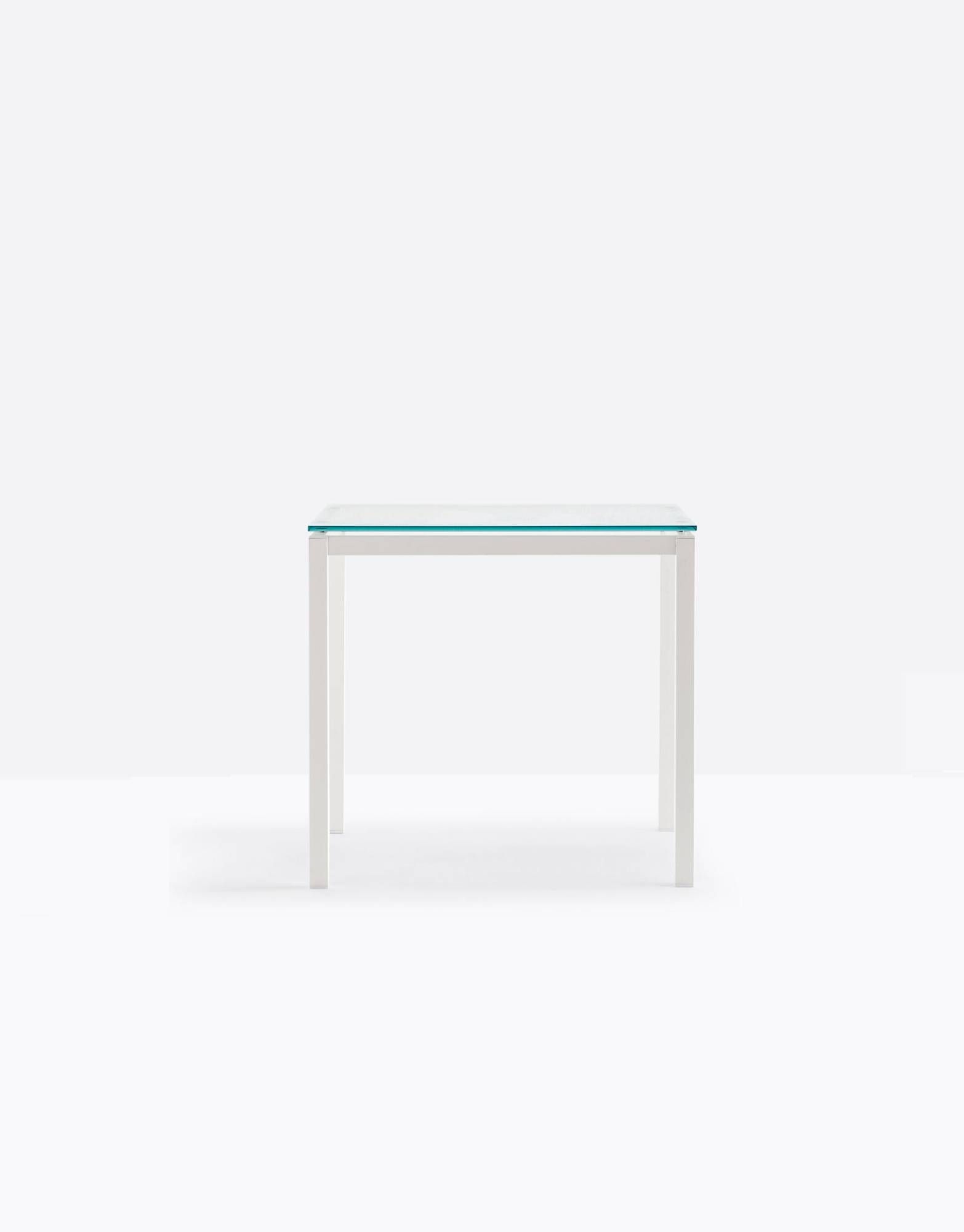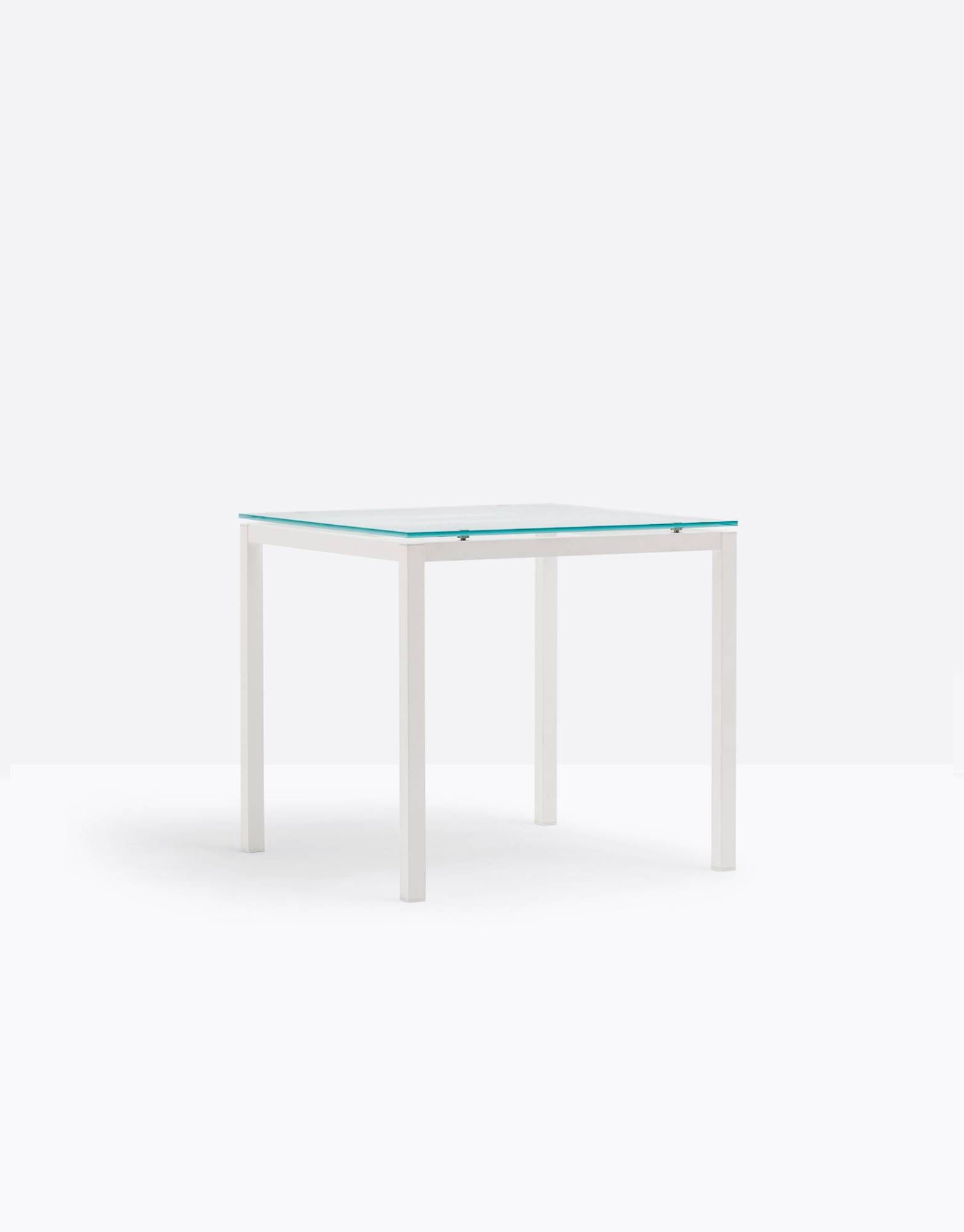 Pedrali KUADRO TK Kuadro to kolekcja stołów i biurek o kwadratowym profilu. Stół z kwadratową ramą z rur stalowych i szklanym blatem dostępny w różnych kształtach i rozmiarach. |