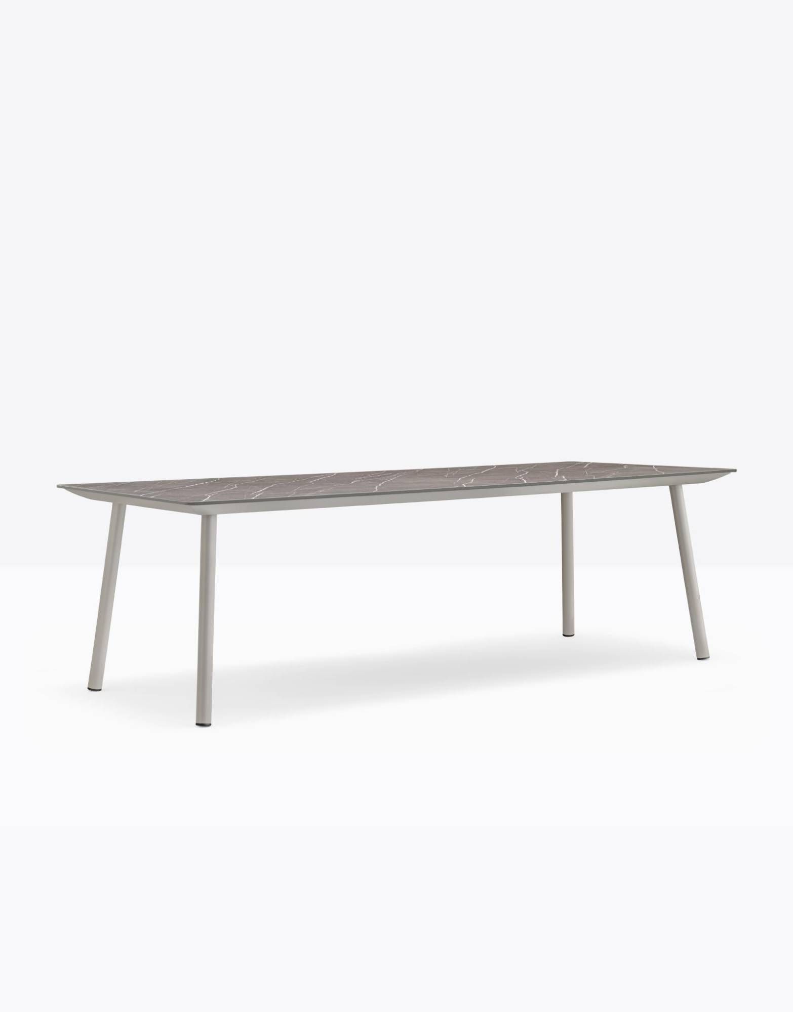 Pedrali BABILA table – Outdoor Stół ogrodowy Babila charakteryzuje się nogami z rury stalowej o średnicy Ø50mm w połączeniu z kwadratowym, okrągłym lub prostokątnym blatem zewnętrznym, wspartym na wytłaczanej aluminiowej ramie. |
