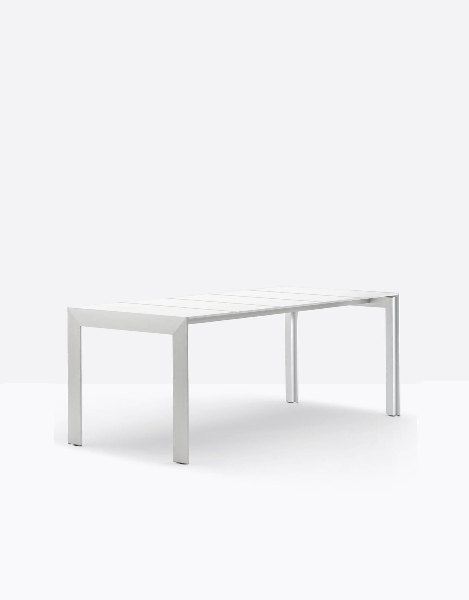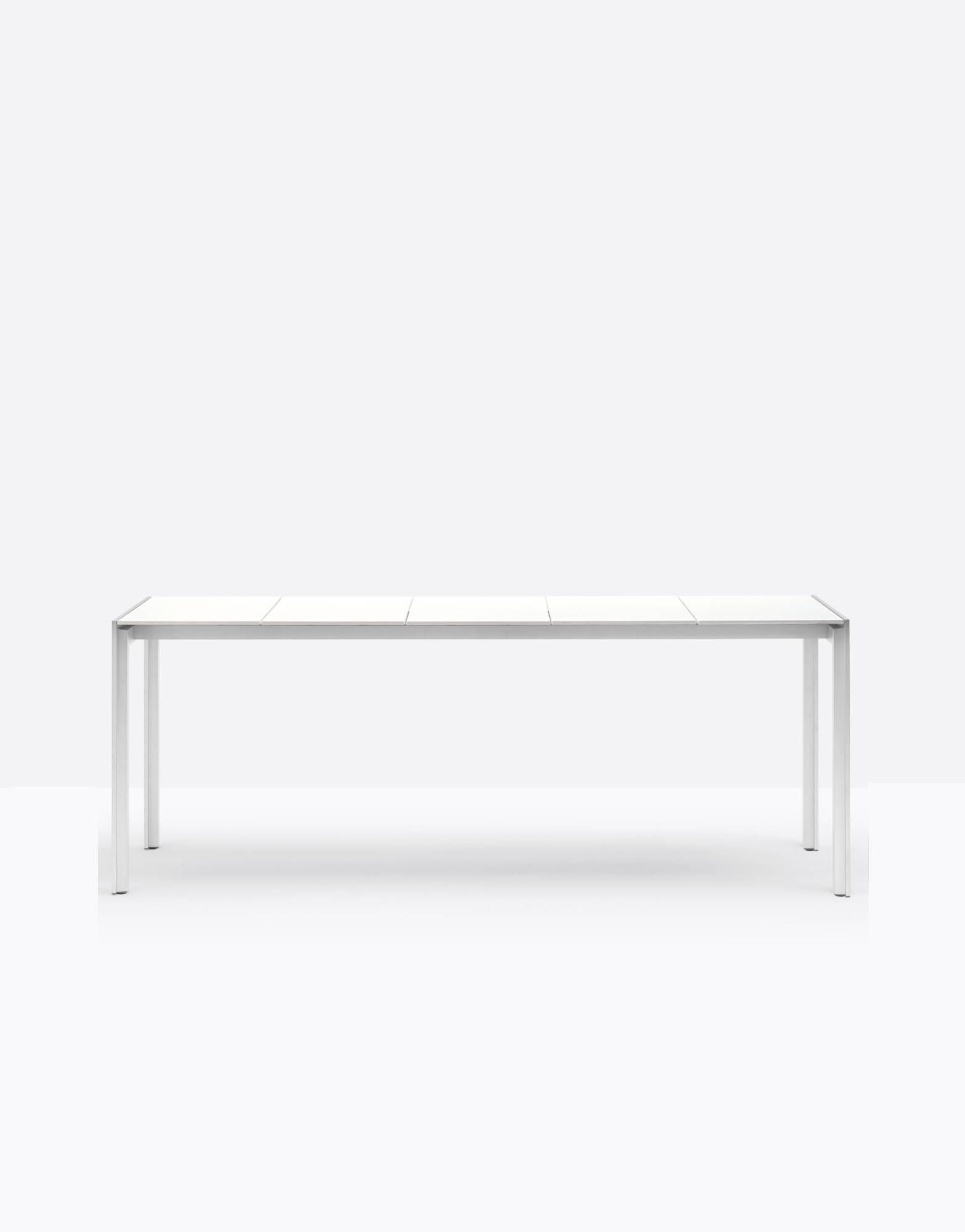 Pedrali MATRIX TMD Matrix to kolekcja stołów, biurek i konsol o prostych i podstawowych liniach, lekkich konstrukcjach, ale o dużej solidności. Stół odpowiedni do użytku na zewnątrz z profilowaną ramą z odlewanego ciśnieniowo aluminium i listwami z litego laminatu HPL. |