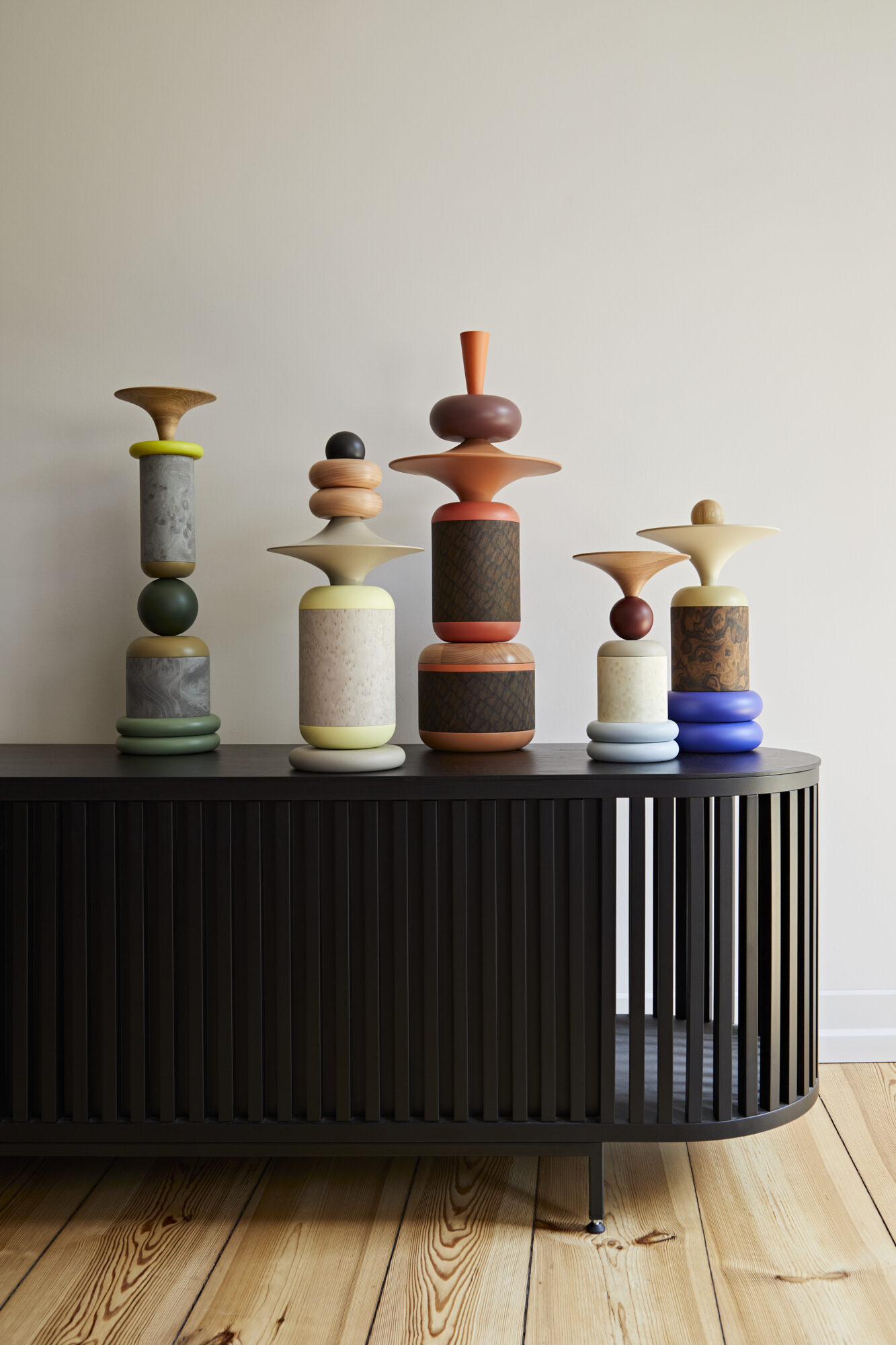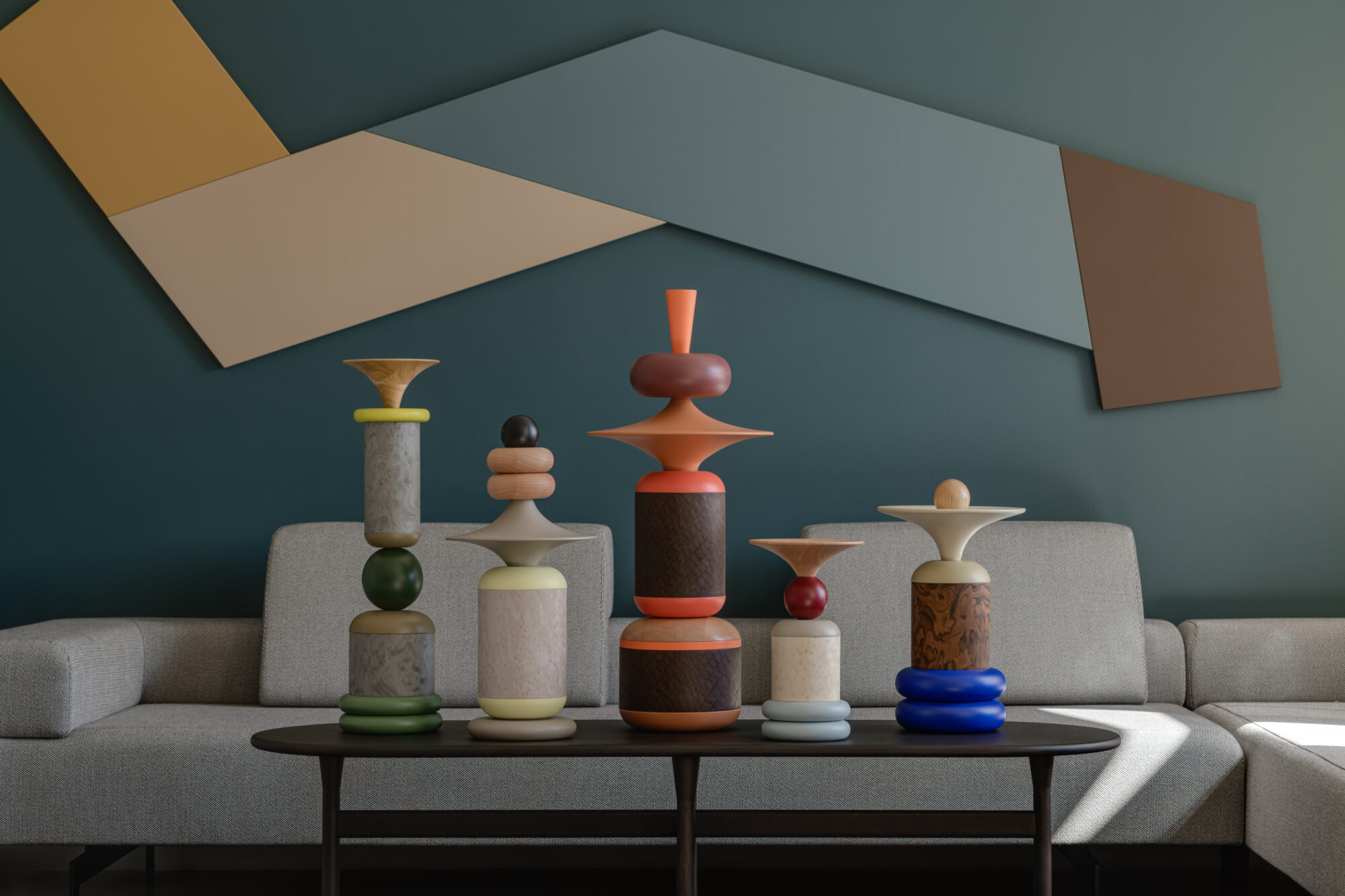 5 unikalnych totemów do wyboru W pięciu różnych rozmiarach totemów odkryjesz ich własny indywidualny charakter. Dzięki cylindrom tworzącym oś totemów oraz umiejętnie wykonanym kształtom „bączków” i „trąbek” totemy emanują kolistym ruchem, który podkreśla ich ręczne wykonanie. Kolorystyka tych obiektów dodaje życia i energii do wnętrz, tworząc urzekające punkty centralne o różnorodnych cechach, od spokojnych i stonowanych po energiczne i temperamentne. Projektantki Supergirls Do Design stworzyły dialog między charakterem tych unikalnych produktów a wnętrzami marki Noti. Ich zaokrąglone kształty, płynne kombinacje form i kolorów wypełniają wnętrza żywiołowością, energią i odrobiną zabawy.