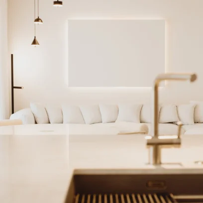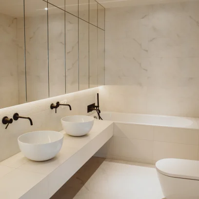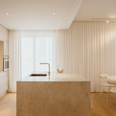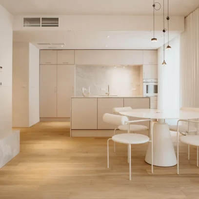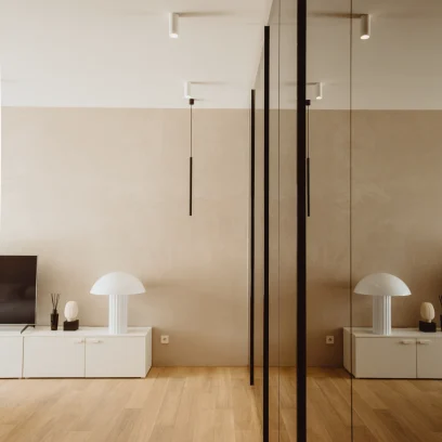 Dzięki współpracy z firmą Arche wyposażyliśmy powierzchnię w zabudowy pod wymiar. W lokalu zastosowano naturalne materiały jak kamień czy naturalny fornir. Mimo iż lokal ma ponad 100m2 to dodatkowo został powiększony wyborem jasnych kolorów oraz zabudowami ukrytymi za płaszczyznami z luster. Motywem przewodnim był minimalizm oraz niecodzienne rozwiązania, dzięki czemu lokal zadziwia i zachwyca każdego użytkownika.