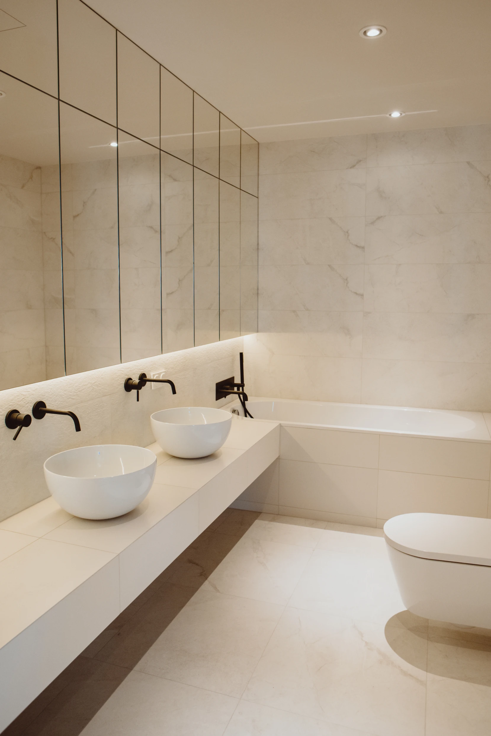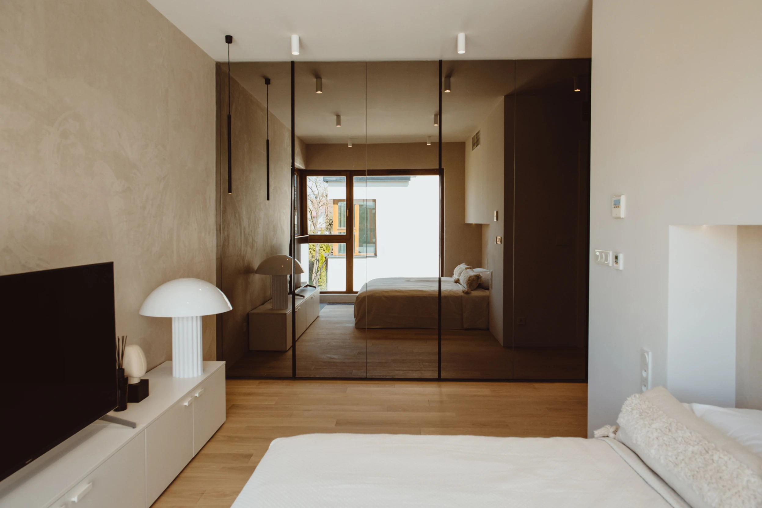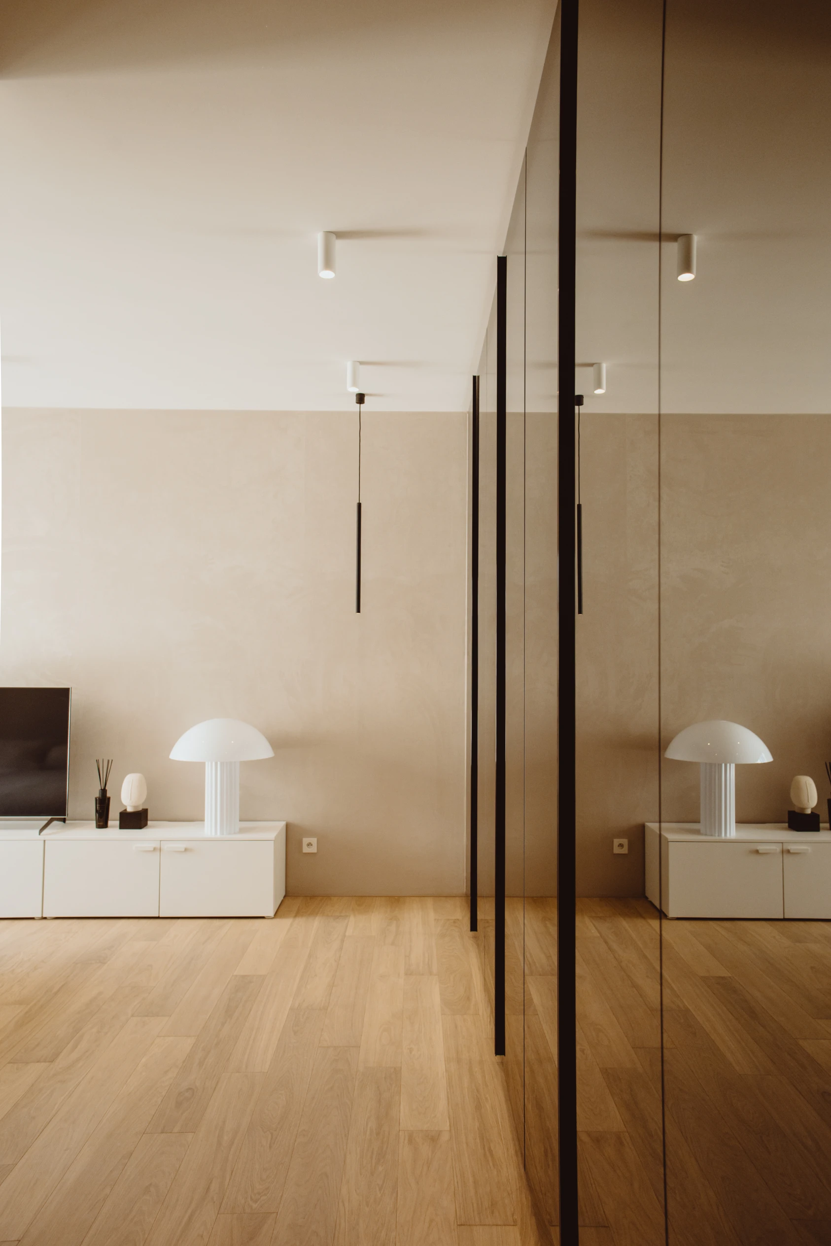 Dzięki współpracy z firmą Arche wyposażyliśmy powierzchnię w zabudowy pod wymiar. W lokalu zastosowano naturalne materiały jak kamień czy naturalny fornir. Mimo iż lokal ma ponad 100m2 to dodatkowo został powiększony wyborem jasnych kolorów oraz zabudowami ukrytymi za płaszczyznami z luster. Motywem przewodnim był minimalizm oraz niecodzienne rozwiązania, dzięki czemu lokal zadziwia i zachwyca każdego użytkownika.