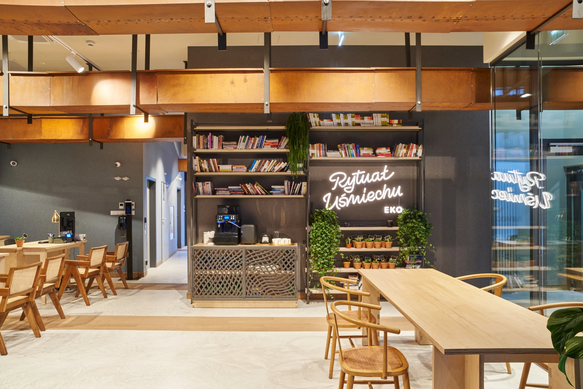W tym projekcie oprócz wypracowanego standardu mebli gabinetowych odpowiadamy również za wsparcie w zakresie produkcji pozostałych zabudów oraz pomieszczeń socjalnych. Dodatkowo dostarczamy też wyposażenie wnętrz oraz siedziska.