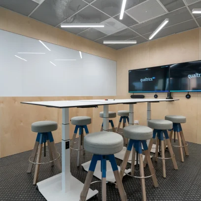 We współpracy z firmą Colliers zrealizowaliśmy projekt dla światowej firmy z dziedziny IT. Firma Qualtrics, bo o niej mowa, jest przodującym dostawcą platformy do zarządzania doświadczeniami klientów i pracowników. Projekt biura zakładał stworzenie luźnej atmosfery z dużą ilością różnorodnych miejsc na spotkania czy odpoczynek.