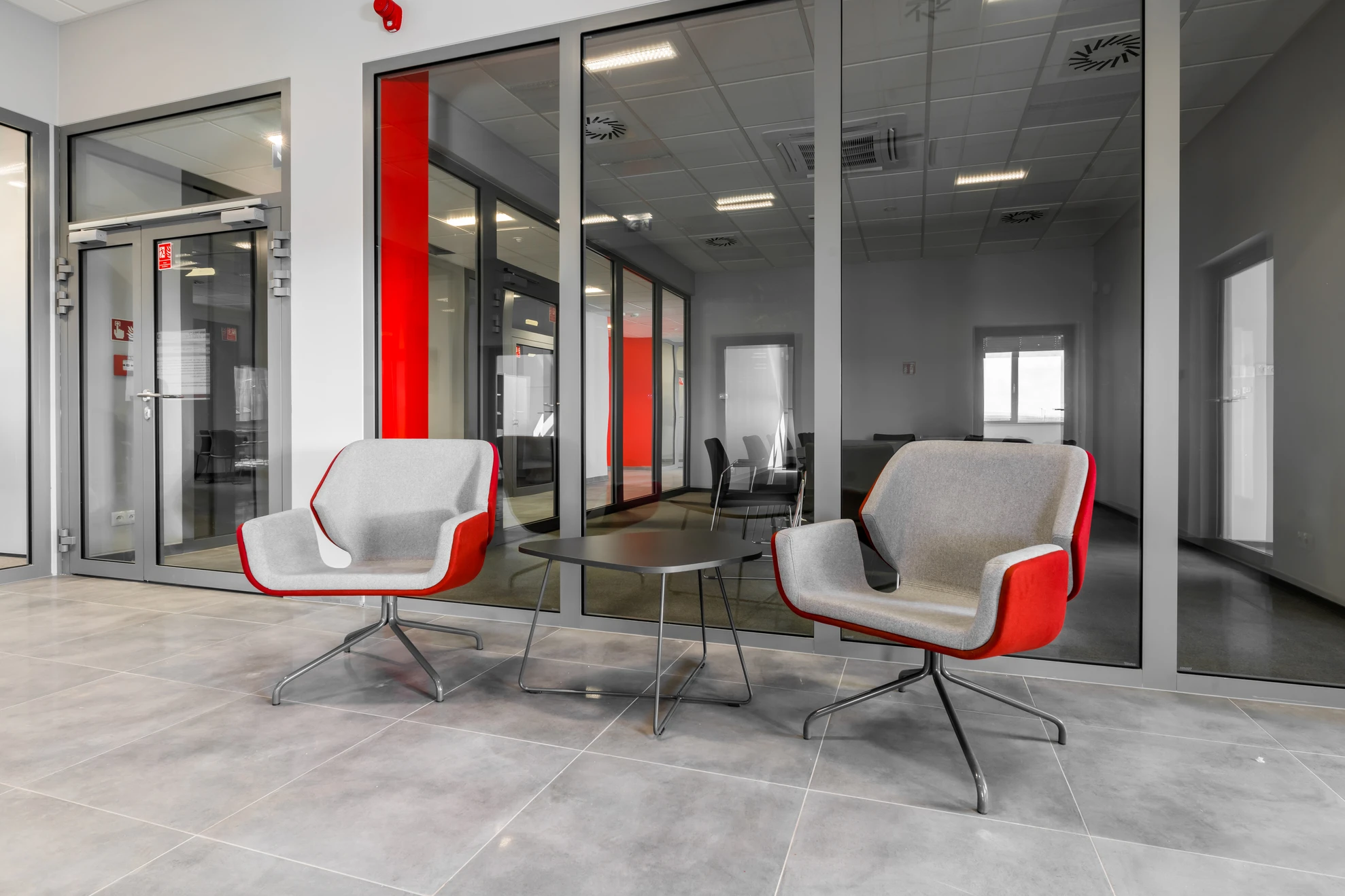 Na prośbę firmy Technonicol wyposażyliśmy w meble ich pierwszą fabrykę w Polsce. Na powierzchnie biurowe wstawiliśmy produkty firmy Maro i siedziska firmy Bejot. W każdym pomieszczeniu staraliśmy się zachować czerwony akcent, który jest flagowym kolorem firmy Technonicol. W pomieszczeniach socjalnych wykonaliśmy zabudowy na wymiar w kolorystyce nawiązującej do reszty biura. Dzięki współpracy z firmą Jotkel wstawiliśmy również wysokiej jakości szatnie dla blisko 200 pracowników produkcyjnych. Jest to pierwsza powierzchnia firmy Technonicol na terenie Polski. Trzymamy kciuki za kolejne!